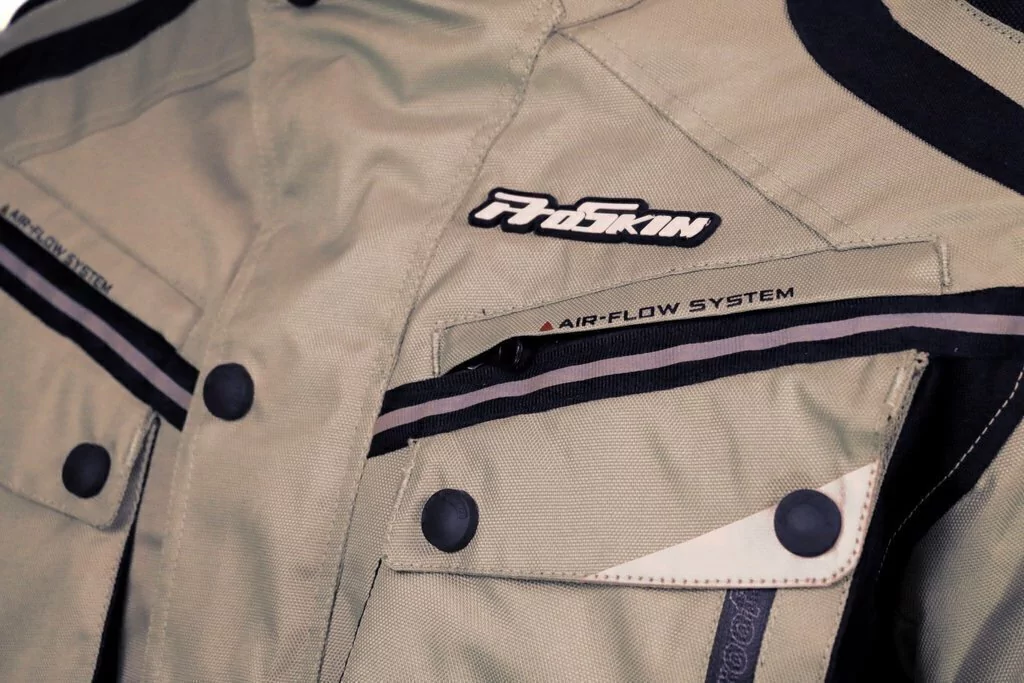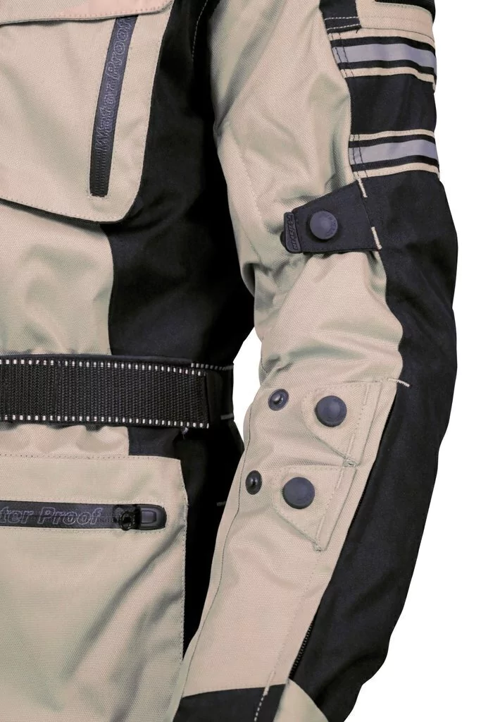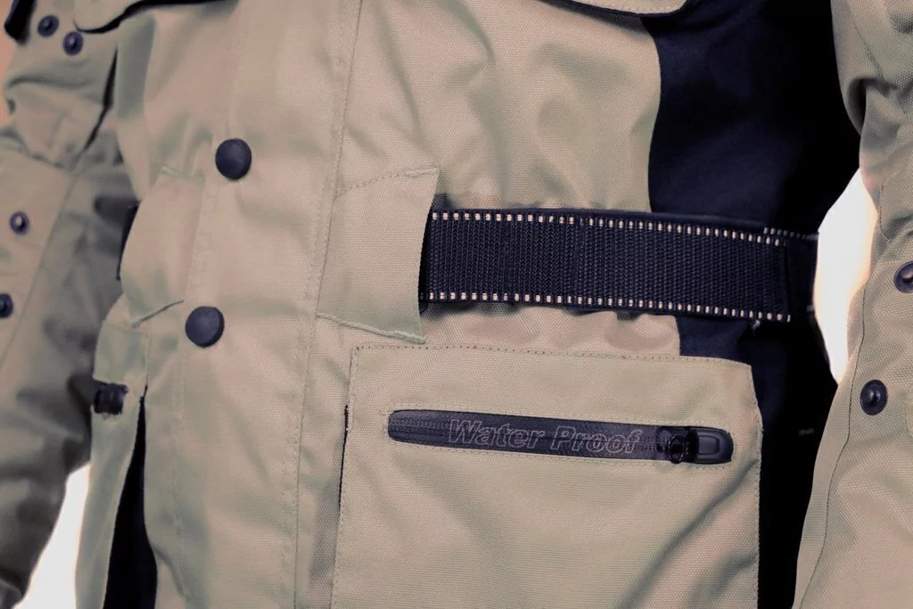 Diseñada exclusivamente para el touring off-road. El diseño técnico de esta prenda tiene en consideración todos los detalles para satisfacer las exigencias mas extremas. Desde el uso del color camel que absorbe los rayos solares manteniendo al piloto fresco hasta su material de cordura poliéster 100% que ofrece una relación optima entre resistencia y peso. Tiene protecciones en codos, hombros y espalda, múltiples bolsillos frontales de gran capacidad, ajuste en mangas y cintura para regular el talle y sierres de respiración/ventilación para ajustar la temperatura del piloto. Viene equipada con cierre de unión para el pantalón DESERT STORM con dos opciones: circunferencia completa y solo para espalda.